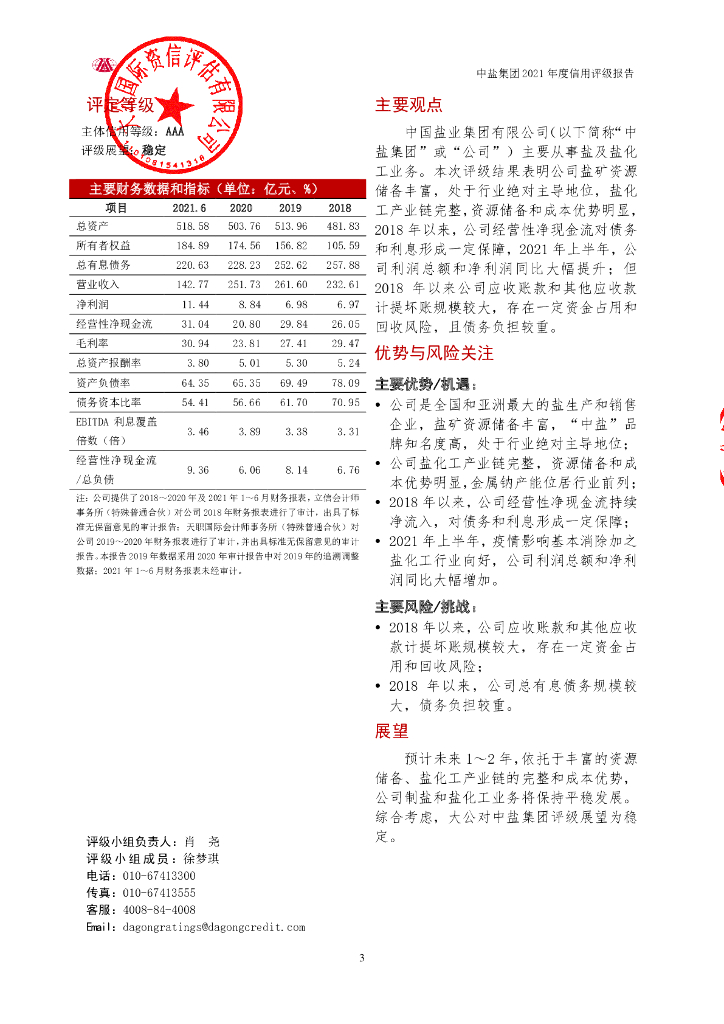 大公:中国盐业集团有限公司2021年信用评级报告.pdf