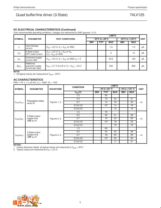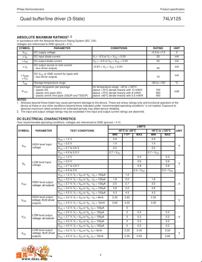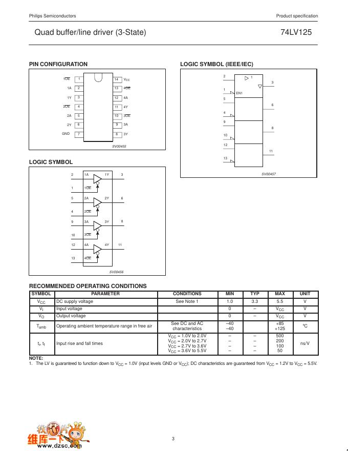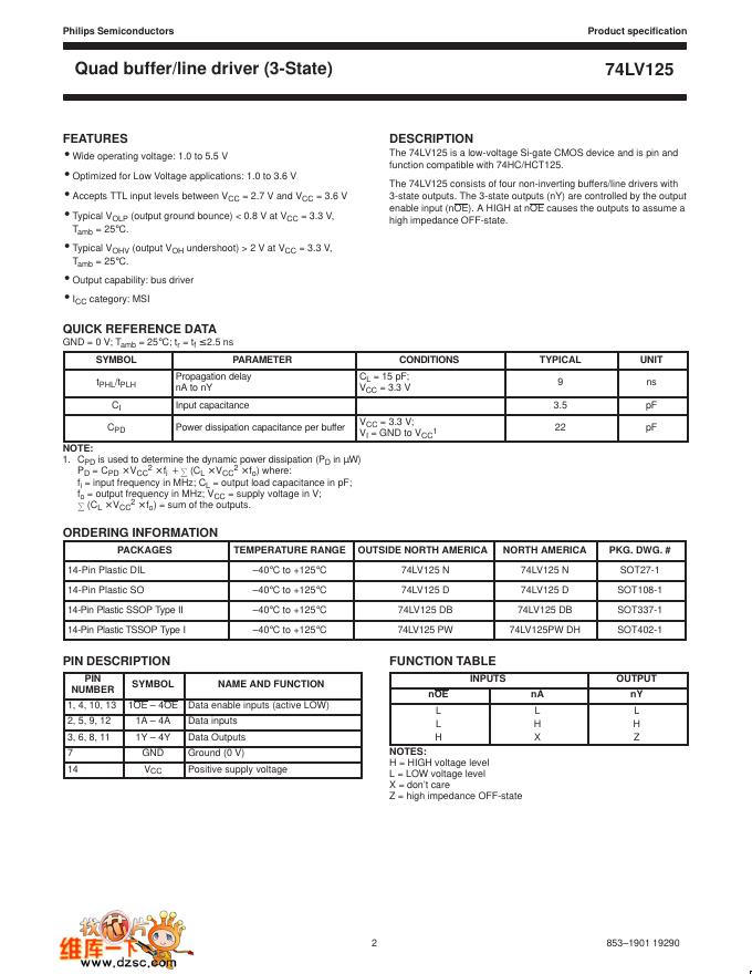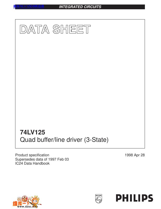 PHILIPS 74LV125 Quad buffer/line driver (3-State) 数据手册.pdf