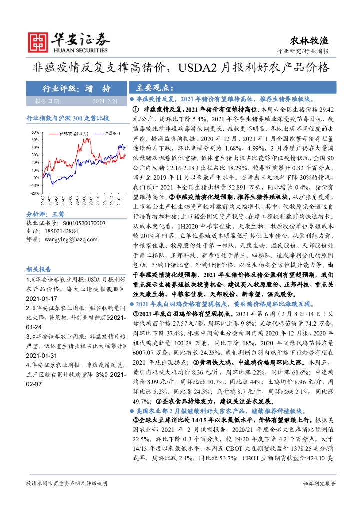 华安证券:农林牧渔行业周报:非瘟疫情反复支撑高猪价,USDA2月报利好农产品价格.pdf