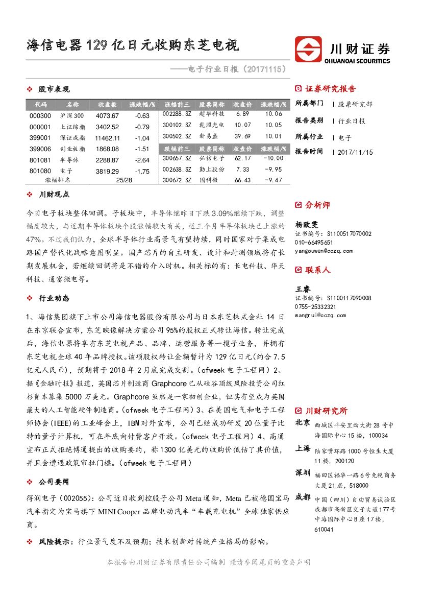川财证券:电子行业日报:海信电器129亿日元收购东芝电视.pdf