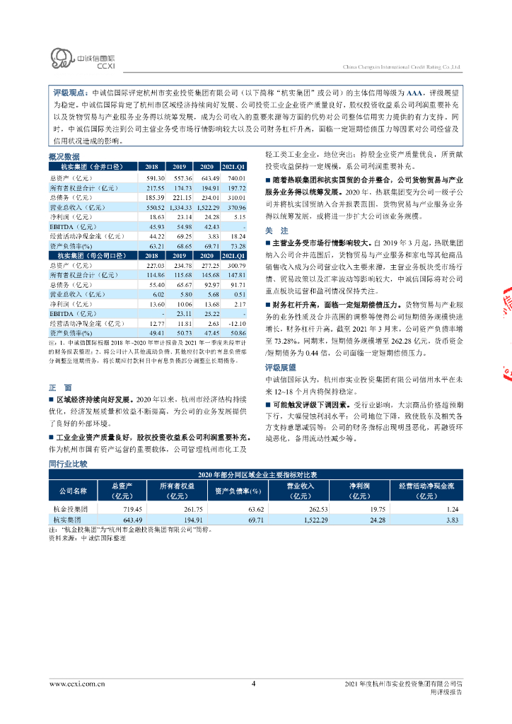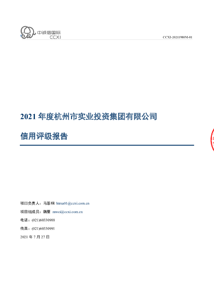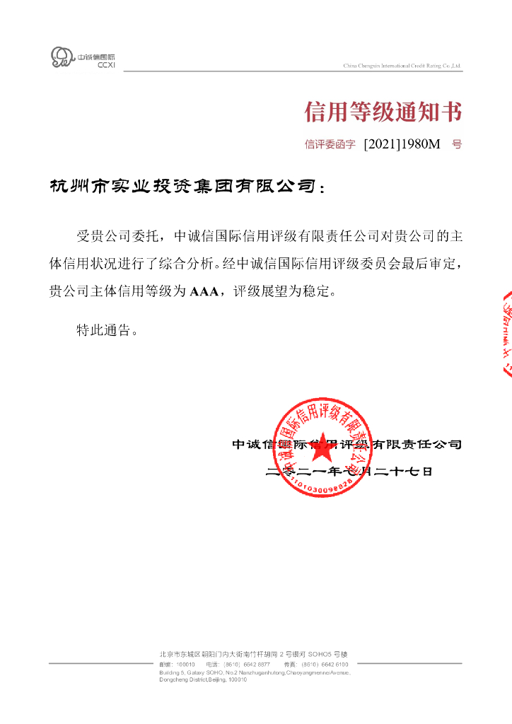 中诚信:杭州市实业投资集团有限公司信用评级报告及跟踪评级安排.pdf