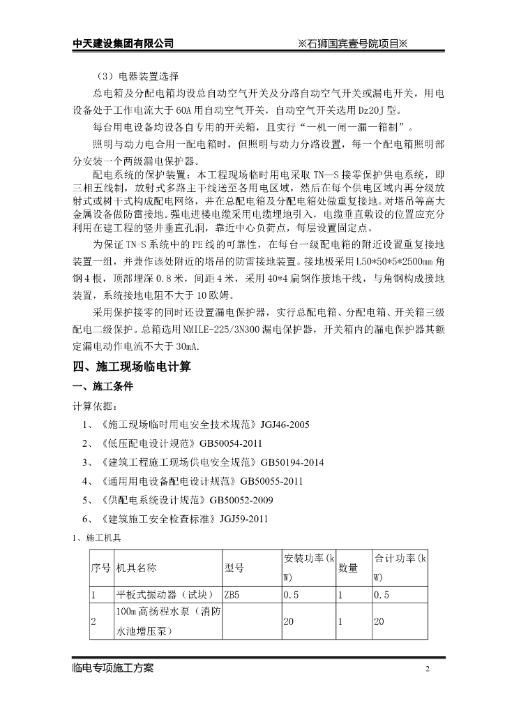 福建高层住宅工程临电专项施工方案.doc