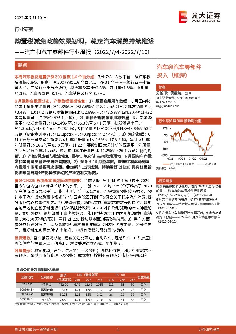 光大证券:汽车和汽车零部件行业周报:购置税减免政策效果初现,稳定汽车消费持续推进.pdf