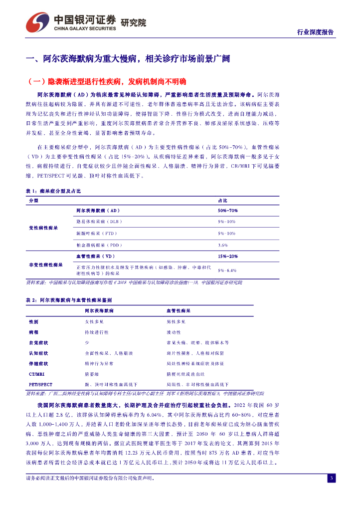 中国银河:医药生物行业深度报告:阿尔茨海默病关注度提升,早期诊断及干预市场空间广阔.pdf