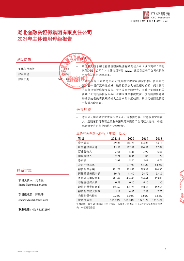 鹏元:湖北省融资担保集团有限责任公司2021年主体信用评级报告.pdf