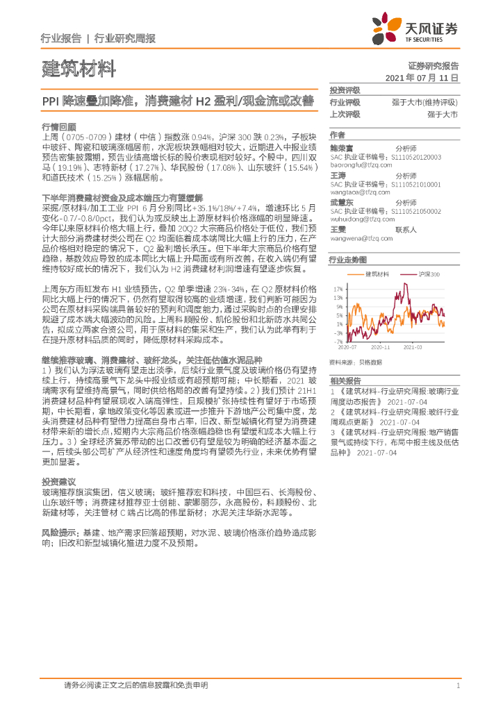 天风证券:建筑材料行业研究周报:PPI降速叠加降准,消费建材H2盈利/现金流或改善.pdf