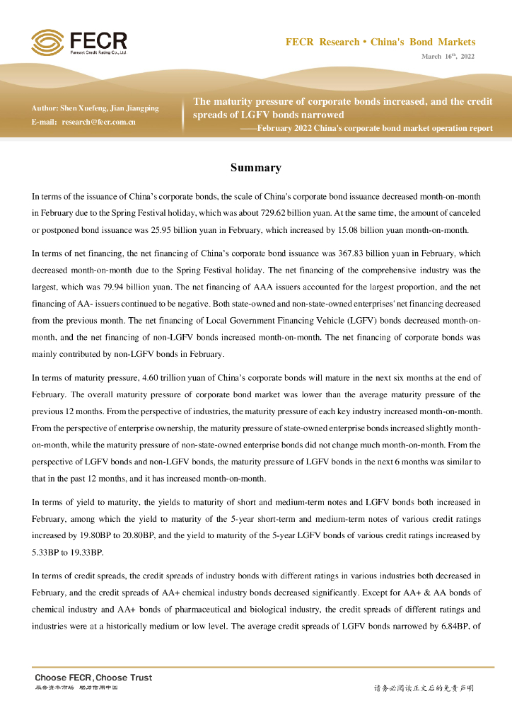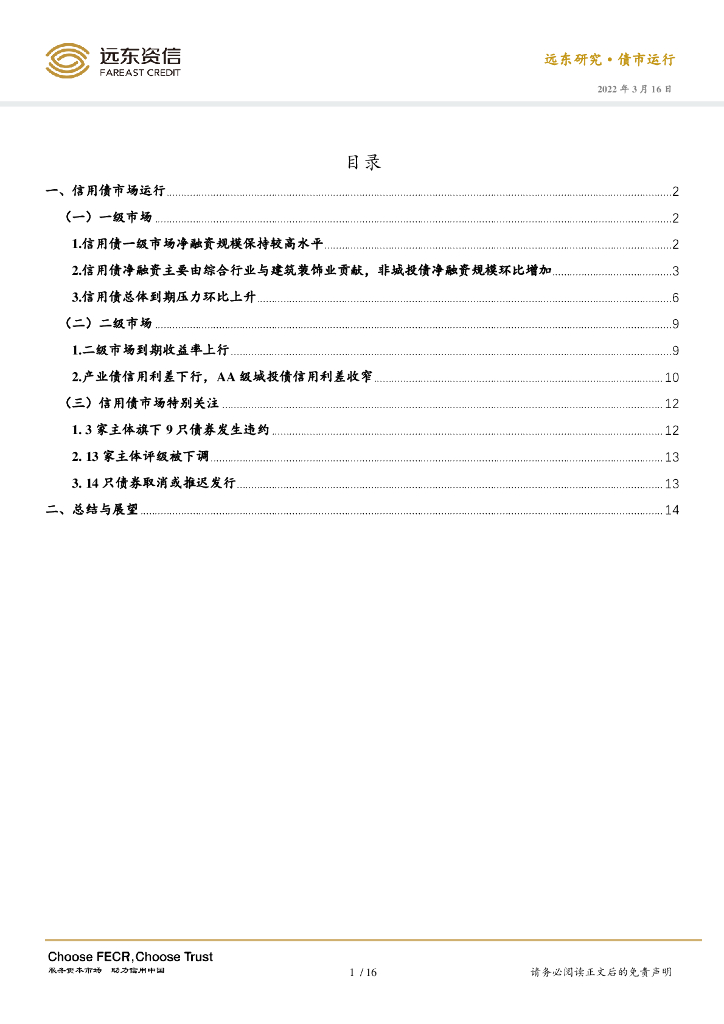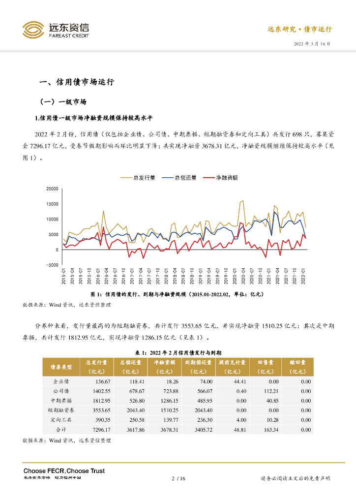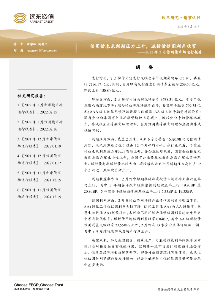 远东资信:2022年2月信用债市场运行报告:信用债未来到期压力上升,城投债信用利差收窄.pdf