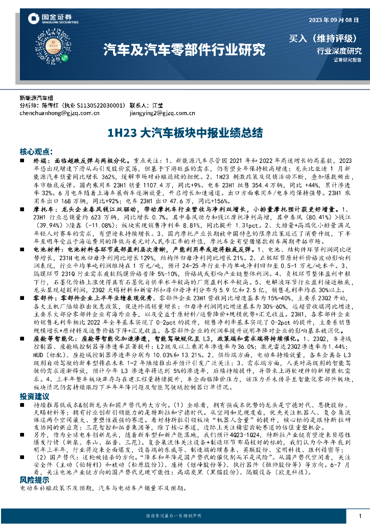 国金证券:汽车及汽车零部件行业研究:1H23大汽车板块中报业绩总结.pdf