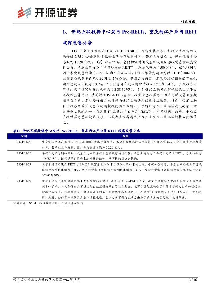 开源证券:REITs行业周报:多只保障房REITs首发申报,保障房REITs表现持续优异.pdf