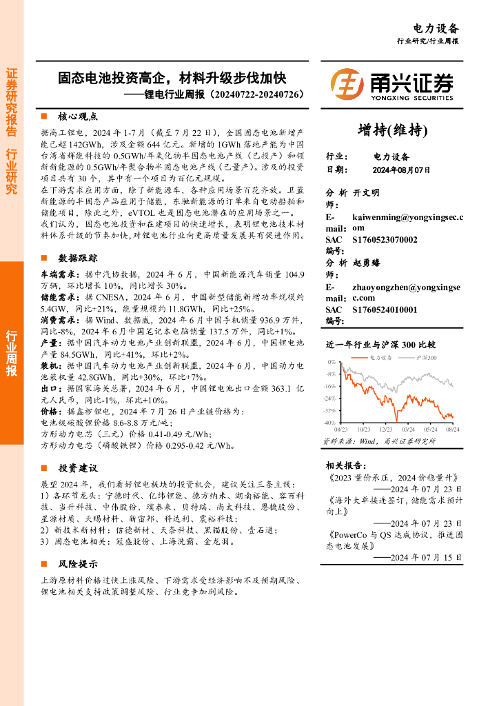 甬兴证券:锂电行业周报:固态电池投资高企,材料升级步伐加快.pdf