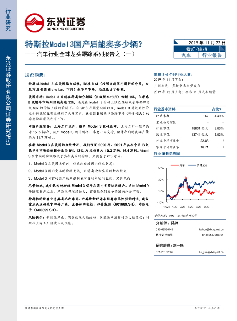 东兴证券:汽车行业全球龙头跟踪系列报告之(一):特斯拉Model3国产后能卖多少辆?.pdf
