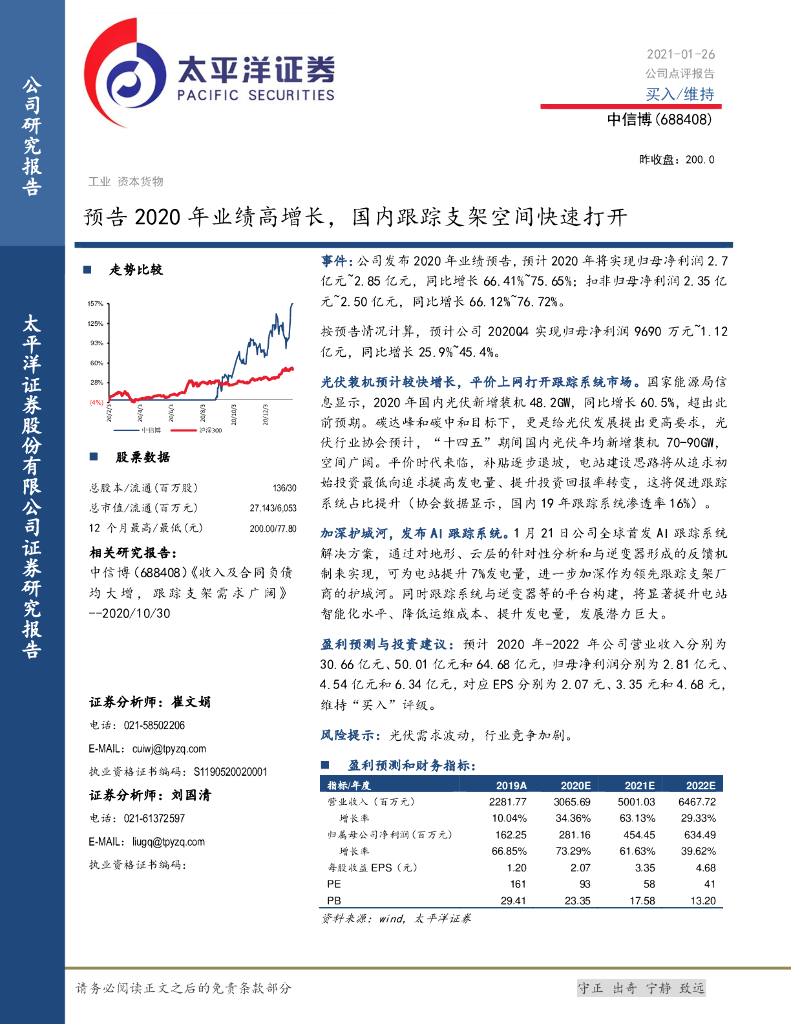 太平洋证券:中信博(688408)-预告2020年业绩高增长,国内跟踪支架空间快速打开.pdf