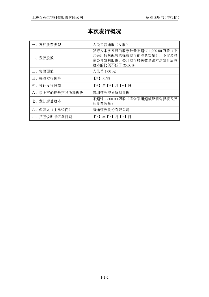 上海百英生物科技股份有限公司深交所创业板IPO上市招股说明书.pdf