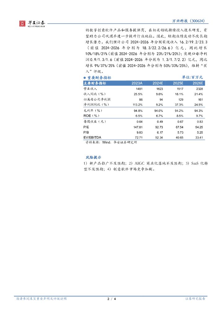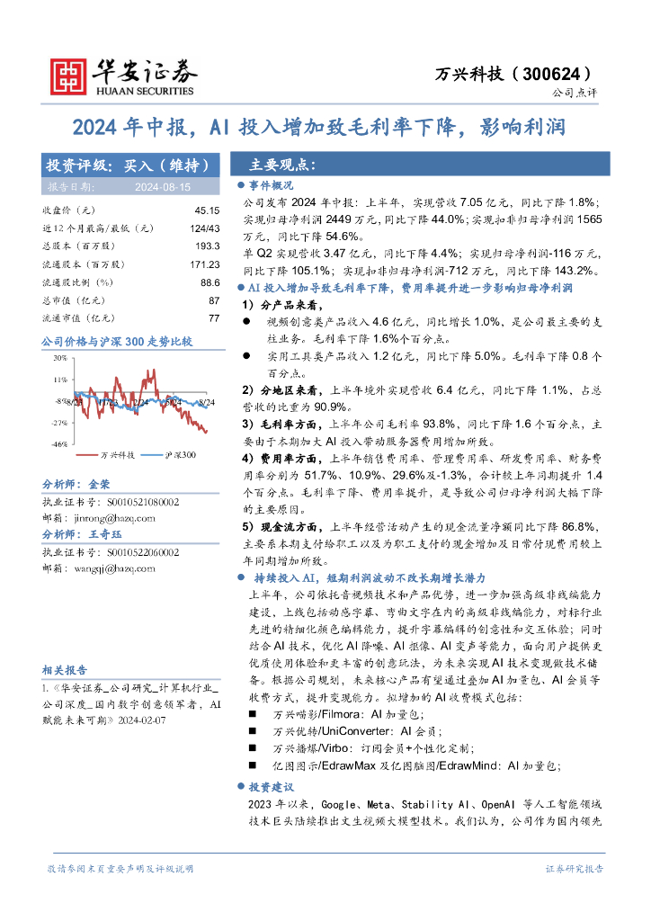 华安证券:万兴科技(300624)-2024年中报,AI投入增加致毛利率下降,影响利润.pdf
