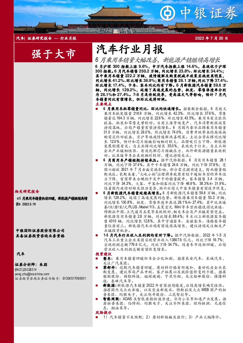 中银证券:汽车行业月报:6月乘用车销量大幅改善,新能源产销继续高增长.pdf