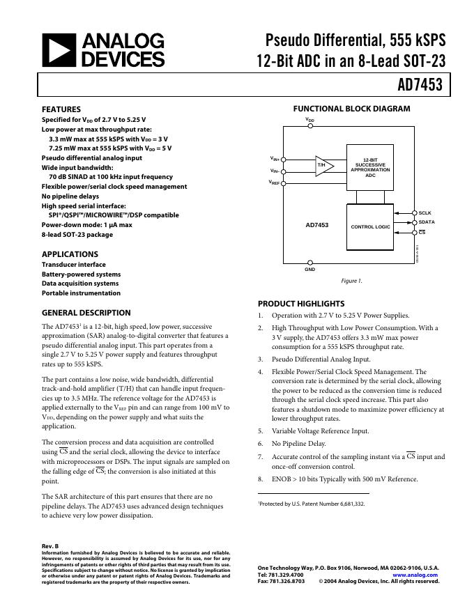 ANALOG DEVICES AD7453 英文产品数据手册.pdf