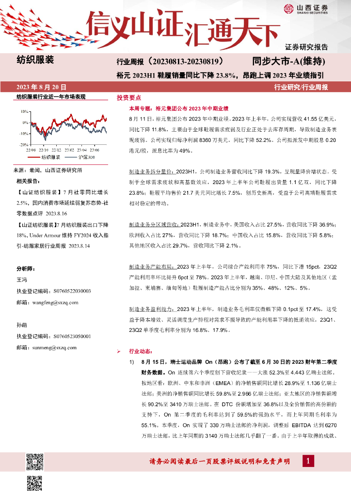 山西证券:纺织服装行业周报:裕元2023H1鞋履销量同比下降23.8%,昂跑上调2023年业绩指引.pdf