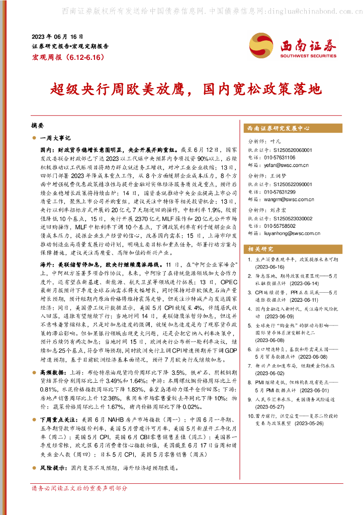 西南证券:宏观周报(6.12-6.16):超级央行周欧美放鹰,国内宽松政策落地.pdf