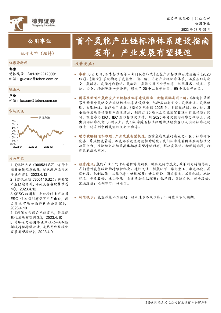 德邦证券:公用事业:首个氢能产业链标准体系建设指南发布,产业发展有望提速.pdf