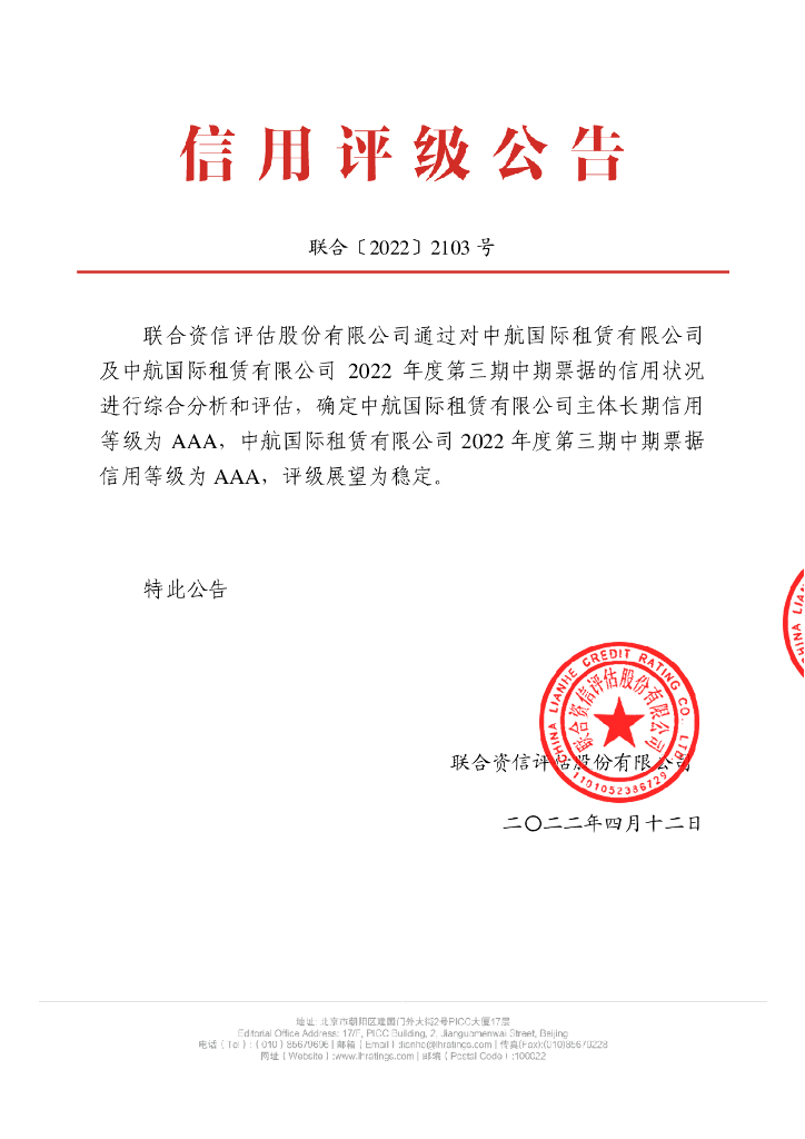 联合资信:中航国际租赁有限公司2022年度第三期中期票据信用评级报告.pdf