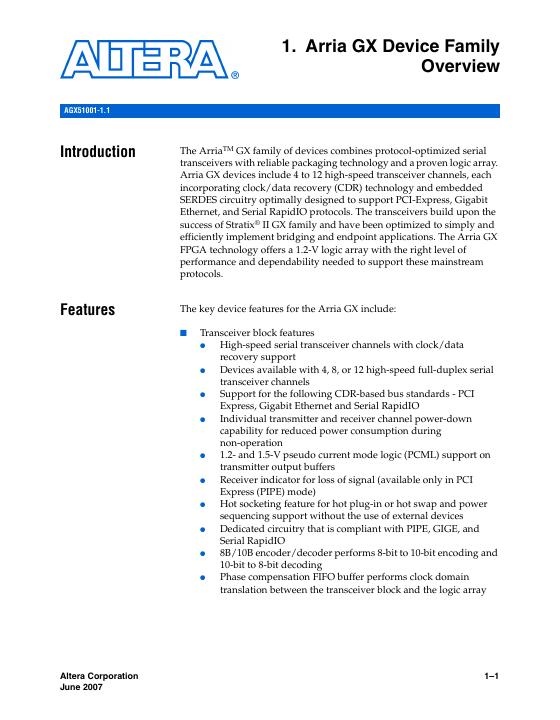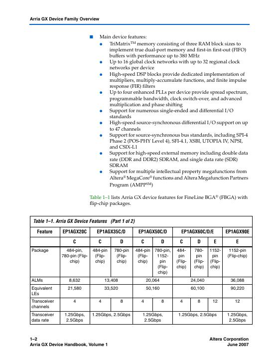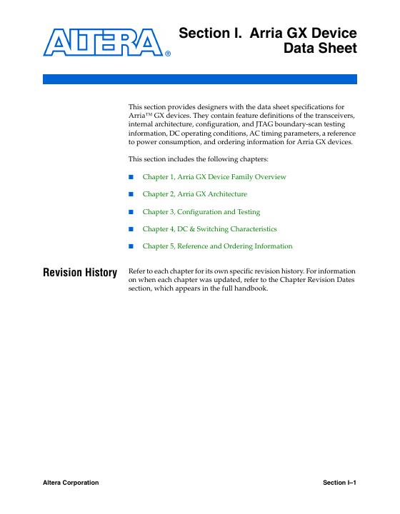 Altera Section I. Arria GX Devic 数据手册.pdf