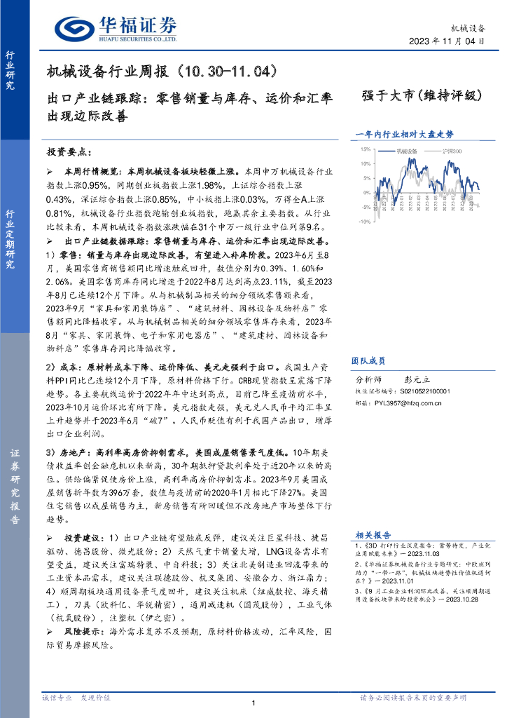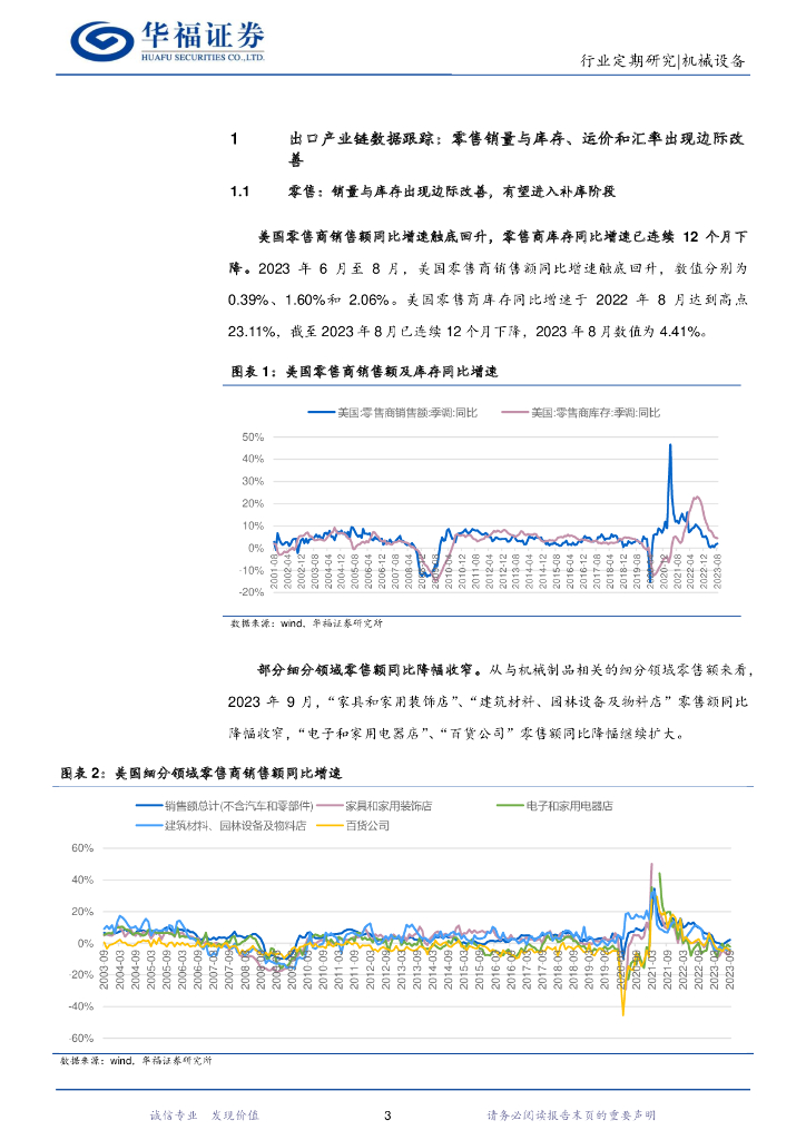华福证券:机械设备行业周报:出口产业链跟踪:零售销量与库存、运价和汇率出现边际改善.pdf