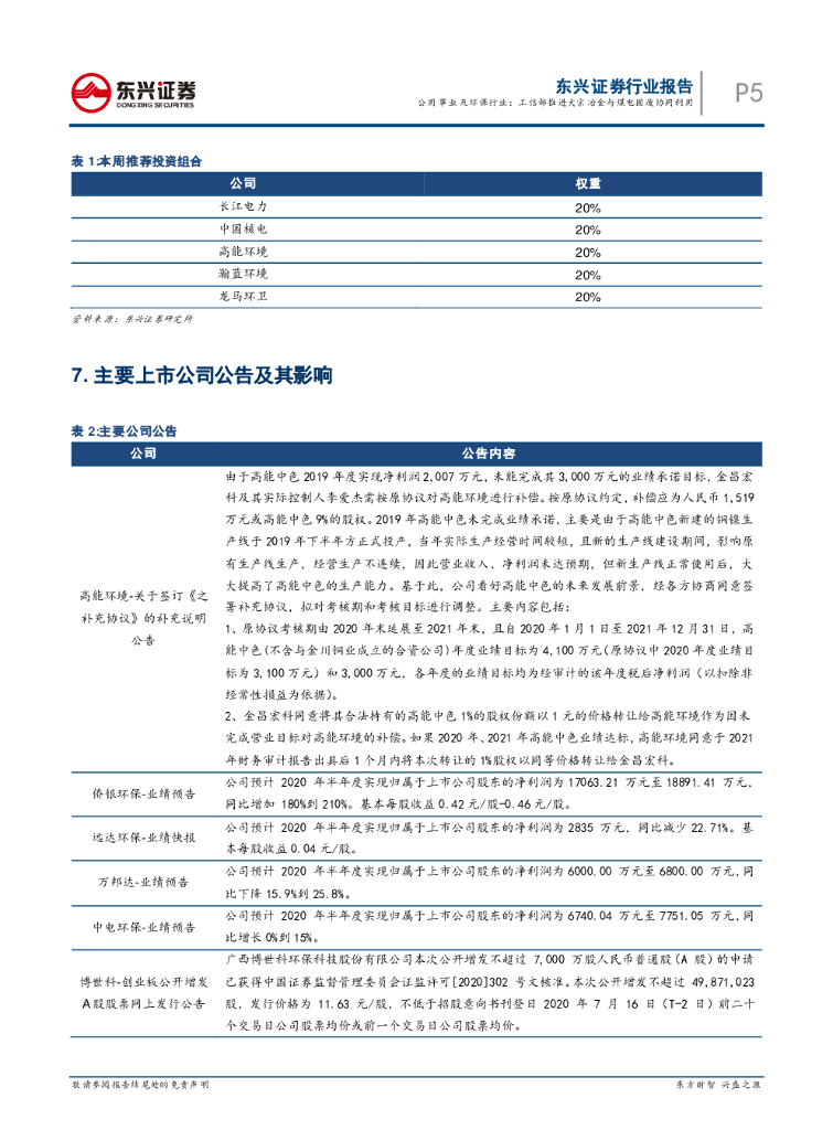 东吴证券:环保行业跟踪周报:【高能环境】受益金属价格上涨,【龙净环保】矿山绿电贡献业绩,重视水固红利价值