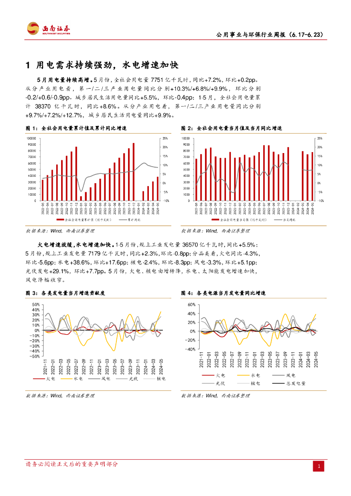 西南证券:公用事业与环保行业周报:用电需求持续强劲,水电增速加快.pdf