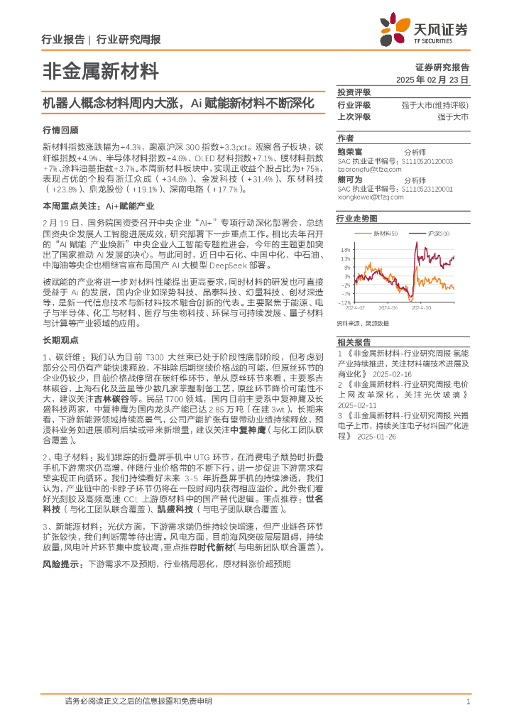 天风证券:非金属新材料行业研究周报:机器人概念材料周内大涨,Ai赋能新材料不断深化.pdf