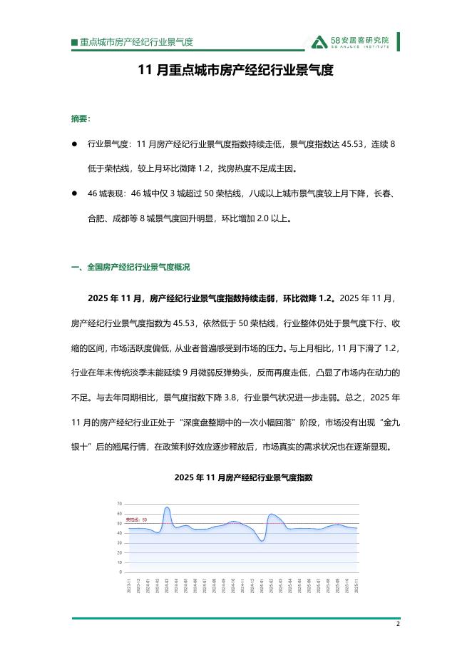 58安居客研究院:2025年11月重点城市房产经纪行业景气度报告.pdf