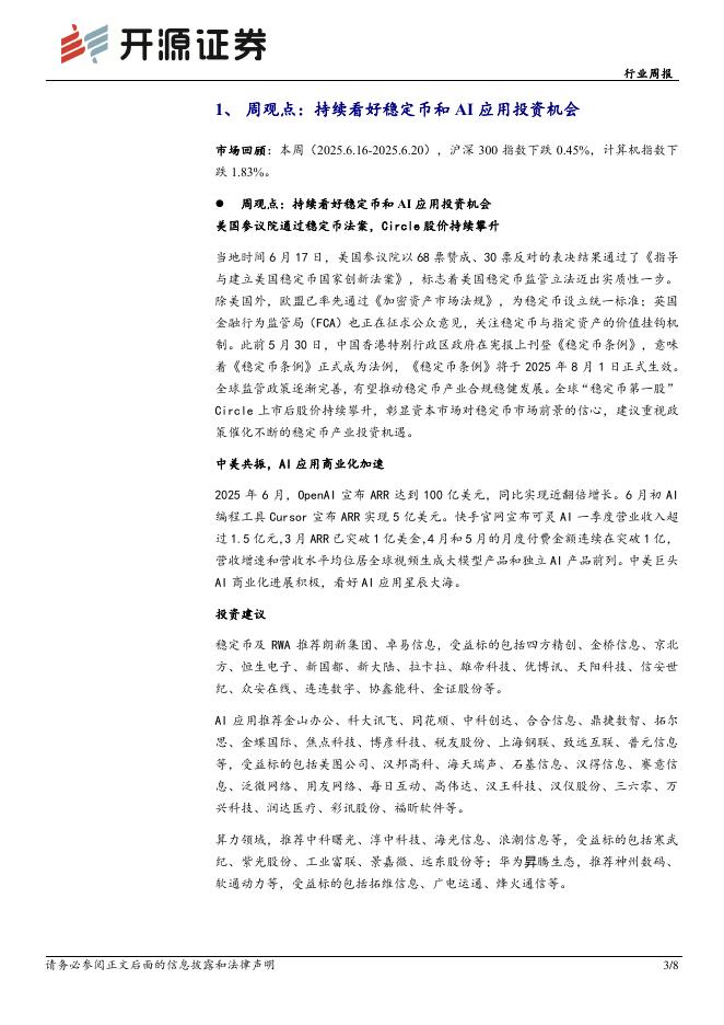 开源证券:计算机行业周报:持续看好稳定币和AI应用投资机会.pdf