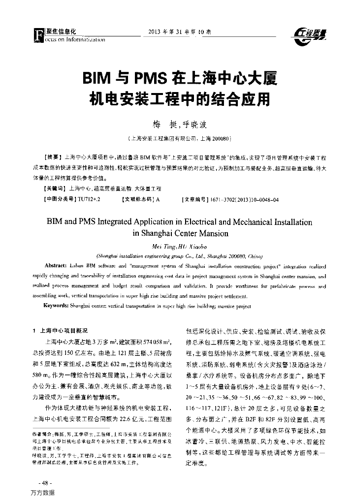 BIM与PMS在某大厦机电安装工程中的结合应用.pdf