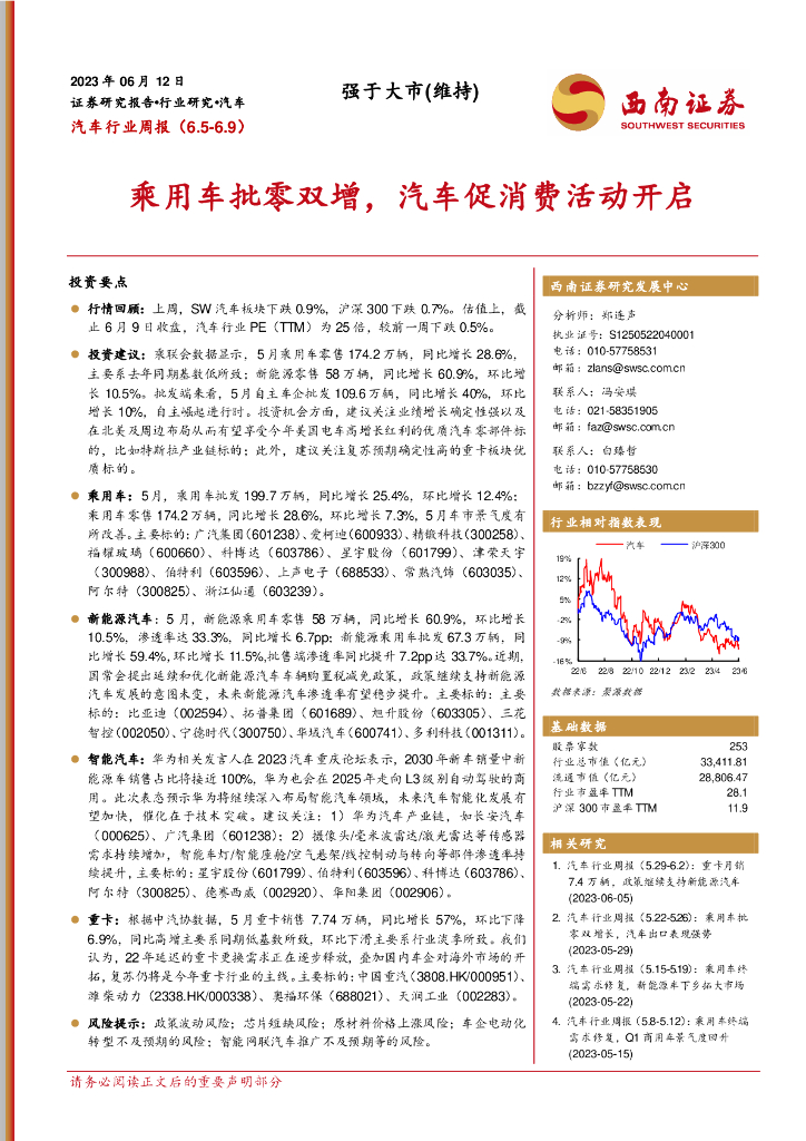 西南证券:汽车行业周报:乘用车批零双增,汽车促消费活动开启.pdf