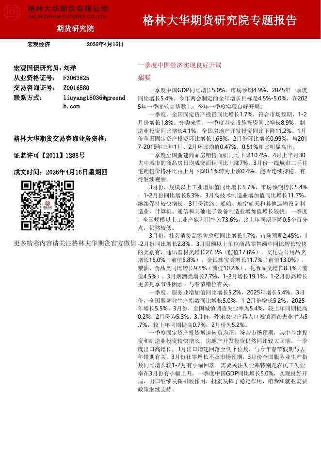格林期货:一季度中国经济实现良好开局-260416.pdf