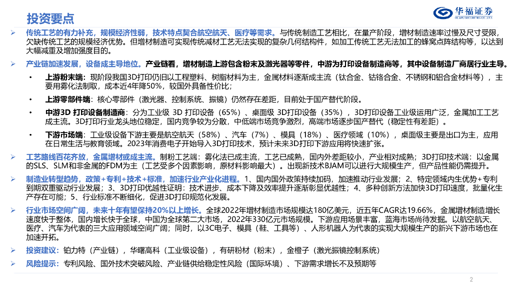 华福证券:3D打印行业深度——蓄势待发,产业化应用赋能未来.pdf