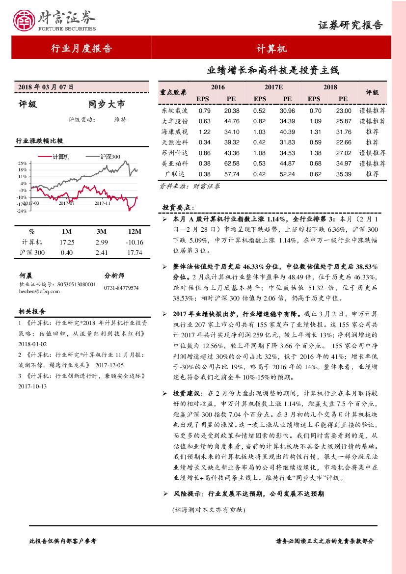 财富证券:计算机行业月度报告:业绩增长和高科技是投资主线.pdf