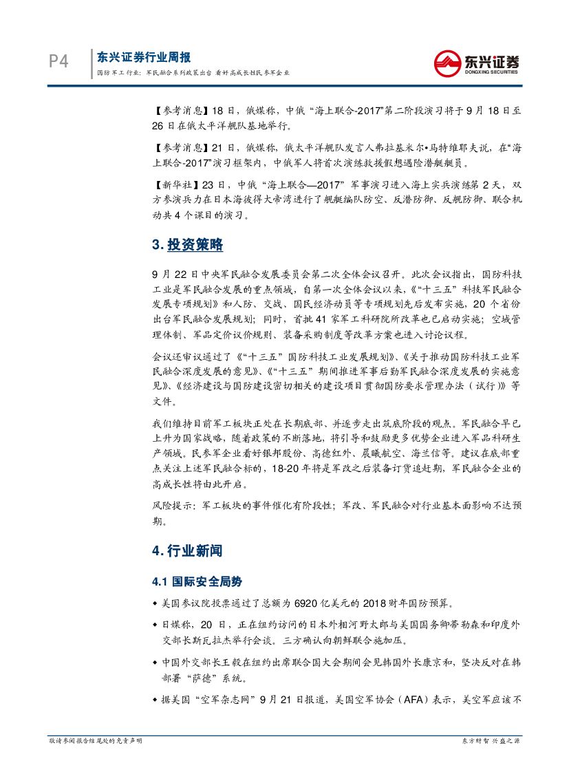 东兴证券:国防军工行业周报:军民融合系列政策出台 看好高成长性民参军企业.pdf