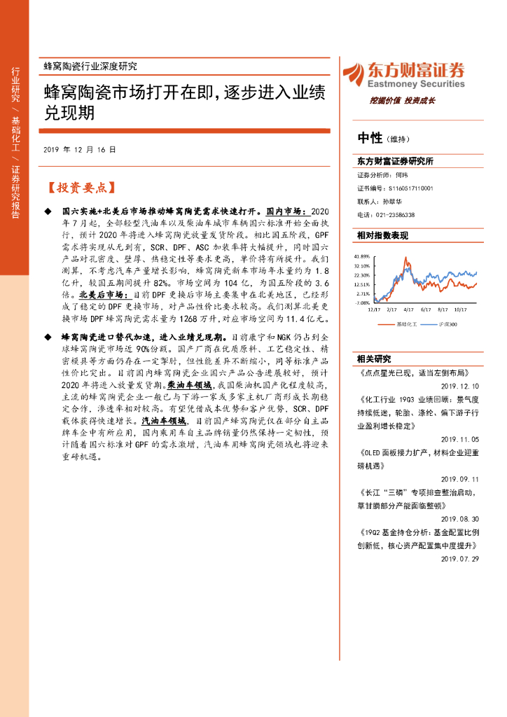 东方财富证券:蜂窝陶瓷行业深度研究:蜂窝陶瓷市场打开在即,逐步进入业绩兑现期.pdf