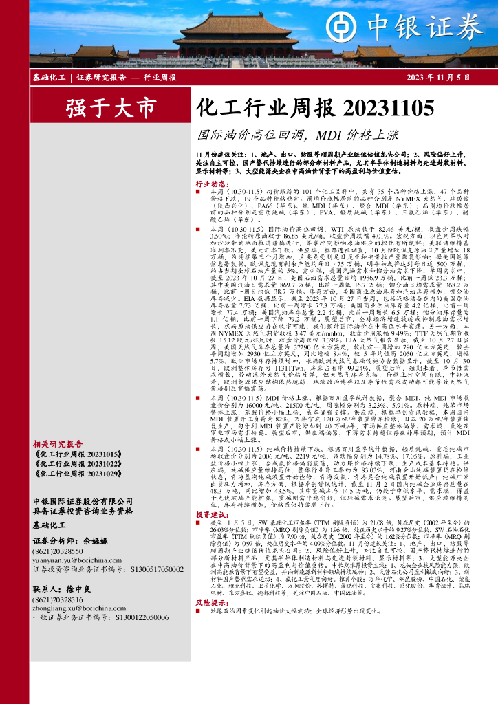 中银证券:化工行业周报:国际油价高位回调,MDI价格上涨.pdf