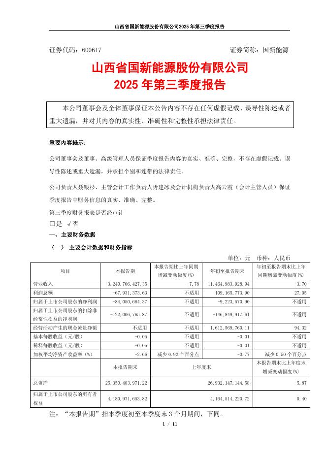 600617-国新能源:山西省国新能源股份有限公司2025年第三季度报告.pdf