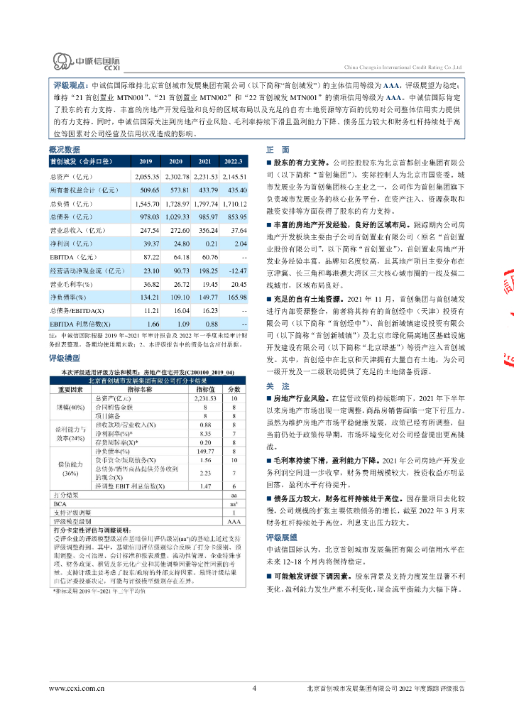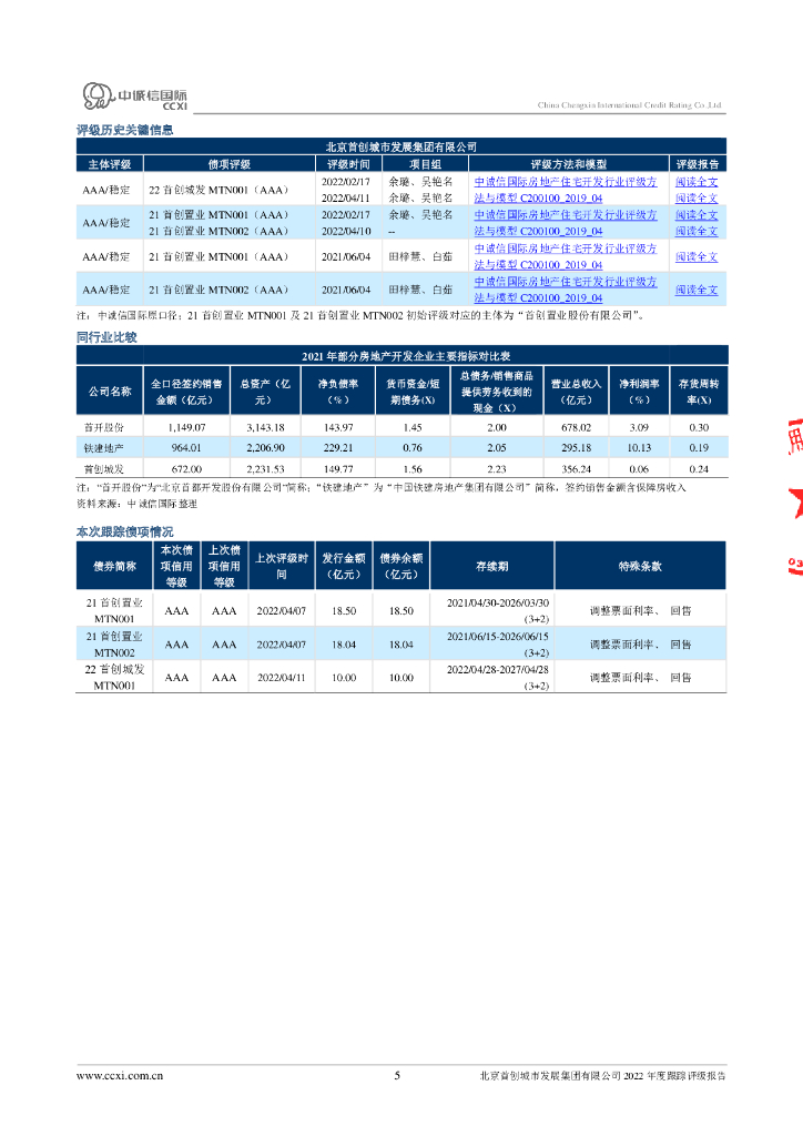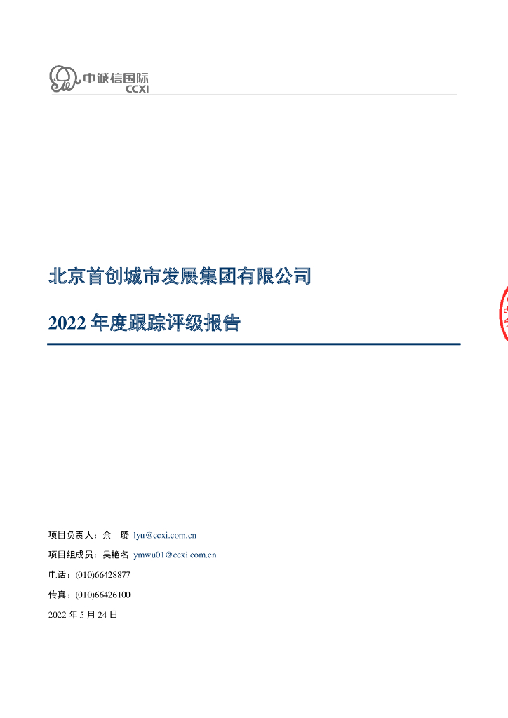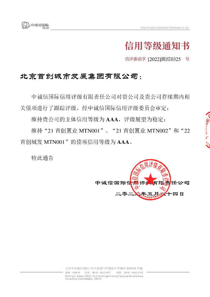 中诚信:北京首创城市发展集团有限公司2022年度跟踪评级报告.pdf