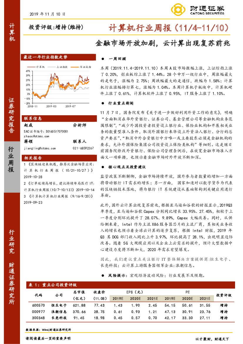 财通证券:计算机行业周报:金融市场开放加剧,云计算出现复苏前兆.pdf