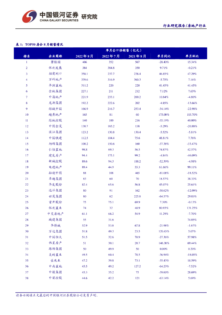 中国银河:百强房企2022年9月销售数据点评:销售修复趋势逐步巩固,区域分化布局优势显现.pdf