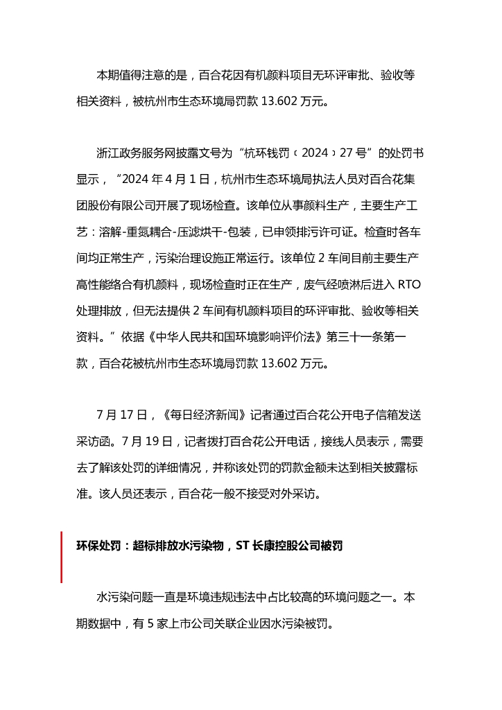 A股绿色周报(2024年7月第三周 总第169期):8家上市公司暴露环境风险 百合花因无法提供项目环评审批、验收资料被罚.pdf