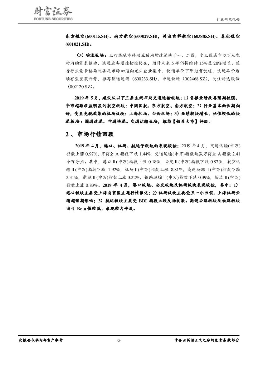 财富证券:交通运输:机场、航运板块表现突出,交运行业跑赢大盘.pdf