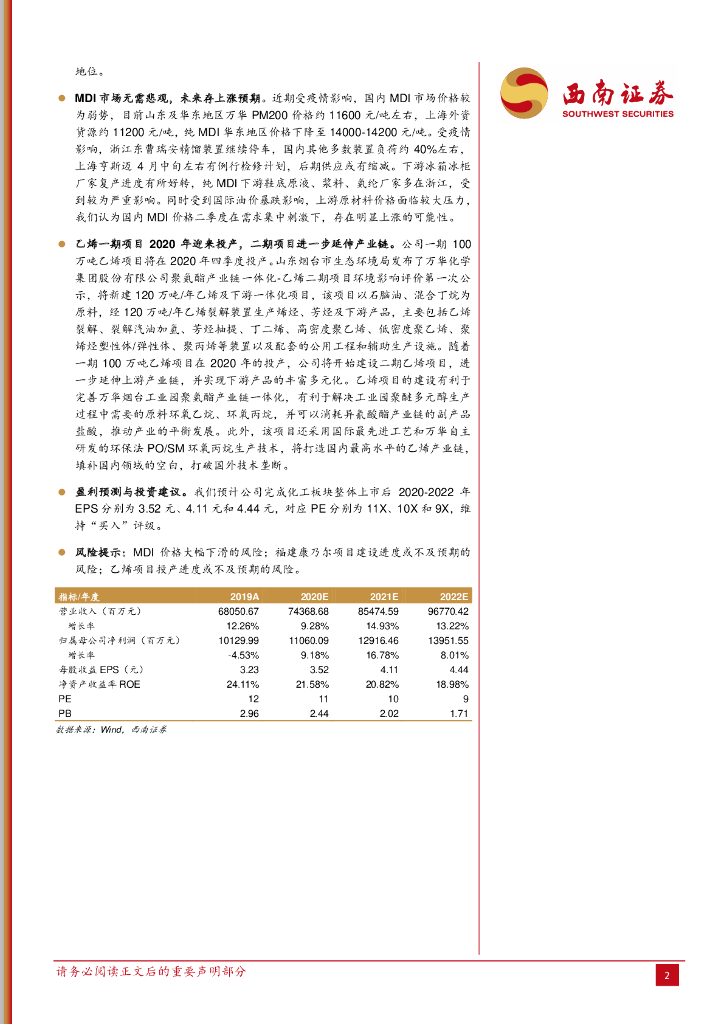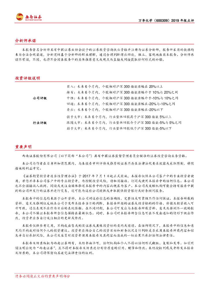 西南证券:万华化学(600309)-业绩保持稳健,看好未来发展.pdf