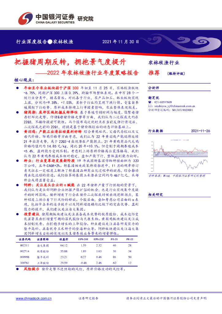 中国银河:2022年农林牧渔行业年度策略报告:把握猪周期反转,拥抱景气度提升.pdf