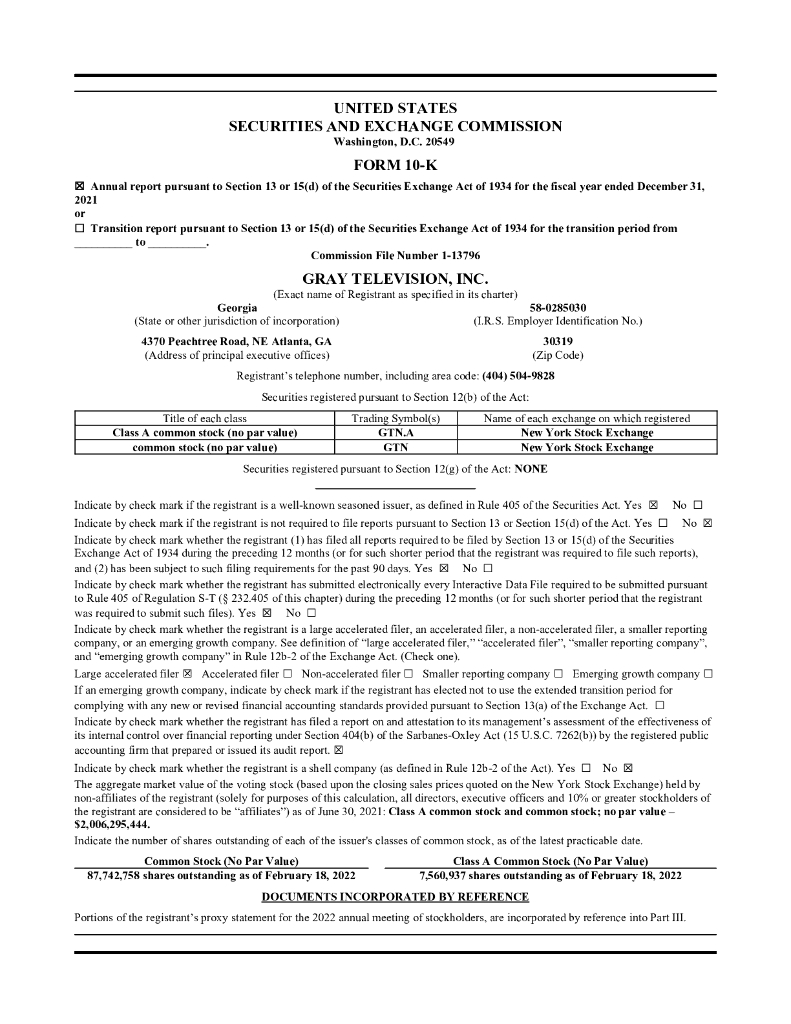 Gray Television Inc.(GTN)2021财年年度报告(英文版).pdf