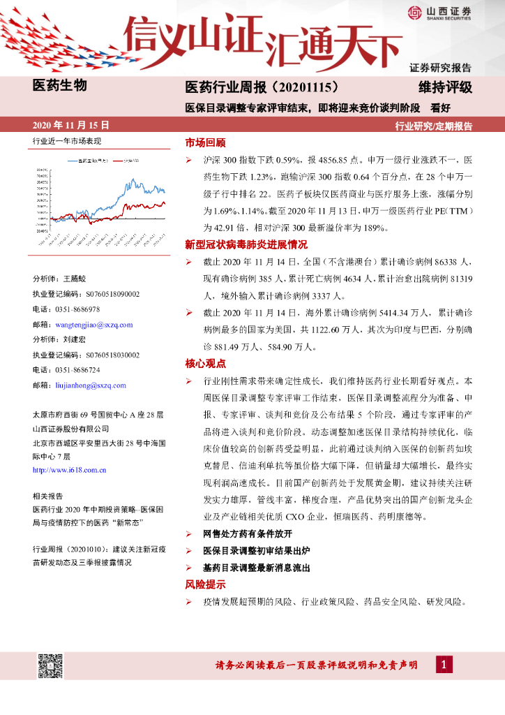 山西证券:医药行业周报:医保目录调整专家评审结束,即将迎来竞价谈判阶段.pdf
