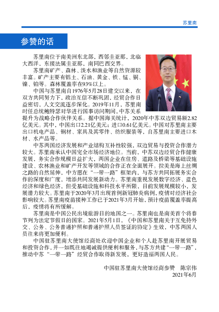 商务部:对外投资合作国别(地区)指南:苏里南(2021年版).pdf